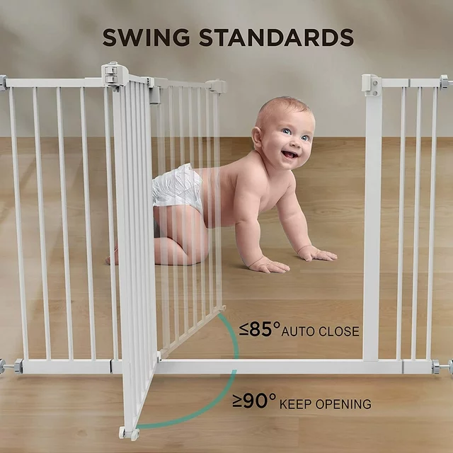 • AUTO-CLOSING SAFETY- This baby gate is designed for busy parents or pet owners that are multi-tasking and might forget to close the dog gate, keeping your loved ones safe is our priority! The safety gate auto-close safety function will apply if the opening angle is less than 85°