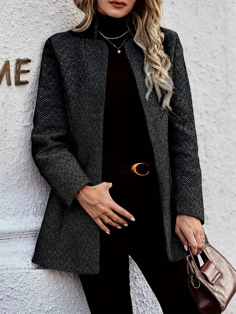 Front Textured Blazer, Elegant Long Sleeve Blazer For Office & Work, Women's Clothing